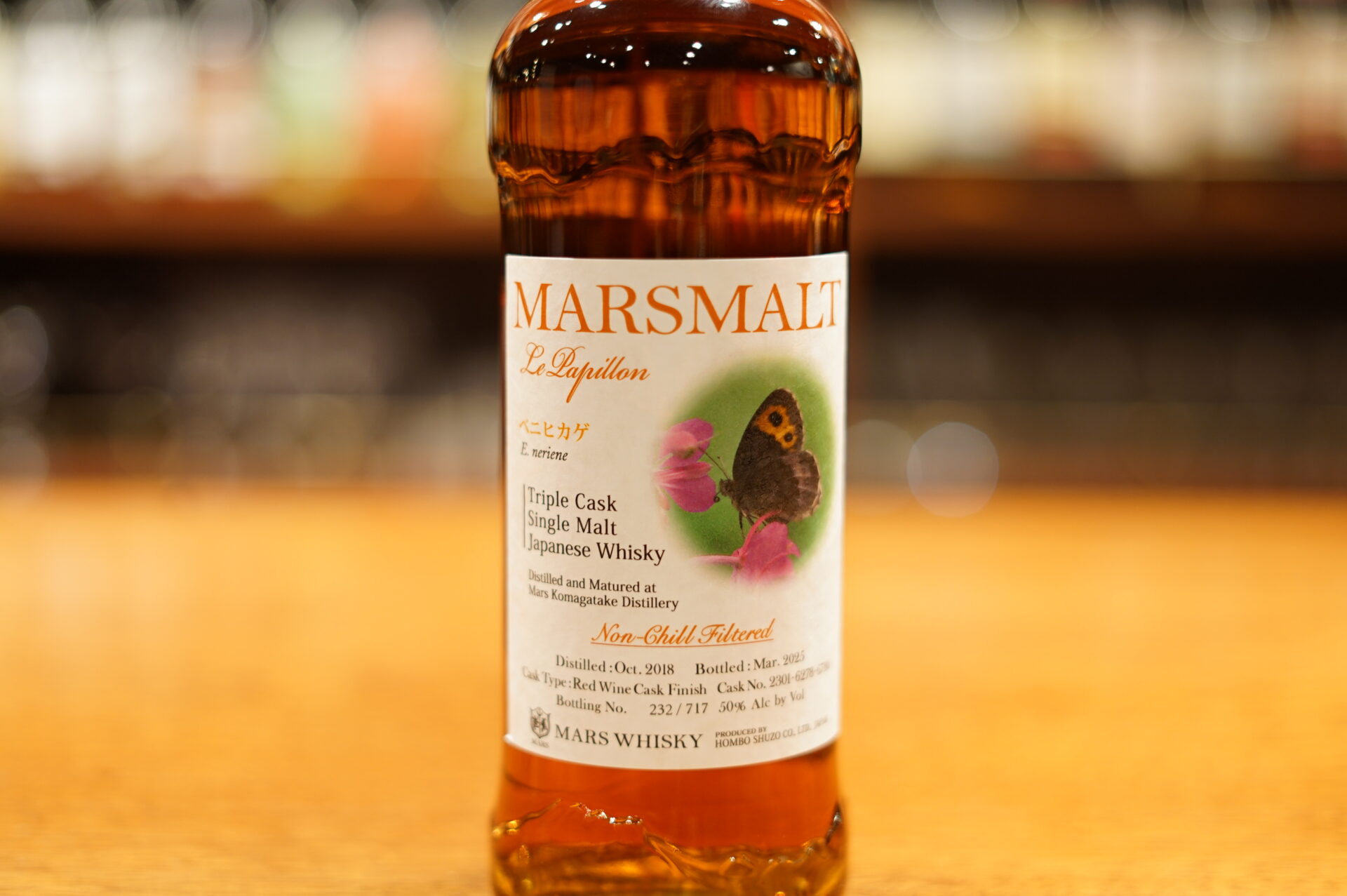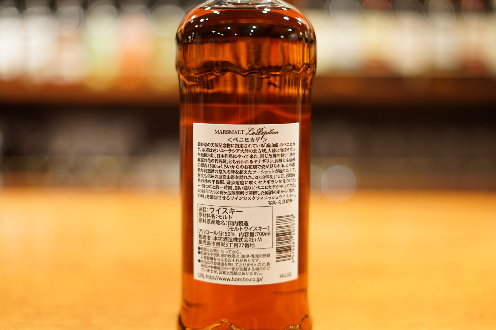 本州では主に標高1,500m以上の草原に生息し長野県では天然記念物に指定されている「ベニヒカゲ」がモチーフ。マルス駒ヶ岳蒸溜所で蒸留し、ワインカスクで熟成したモルト原酒をヴァッティングしたトリプルカスク・シングルモルトウイスキーの逸品です。