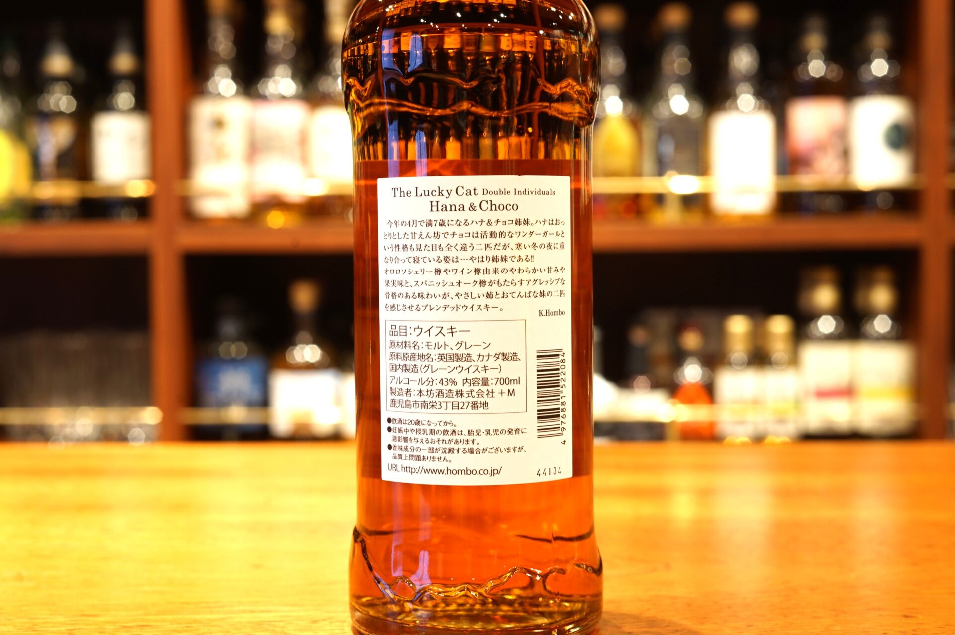 シリーズ第9弾となる「 The Lucky Cat Double Individuals Hana & Choco 」は、性格も見た目も違うハナとチョコの姉妹をモチーフに、オロロソシェリー樽やワイン樽由来の味わいと、スパニッシュオーク樽がもたらす味わいが、二匹の姉妹を想わせるブレンデッドウイスキーです。